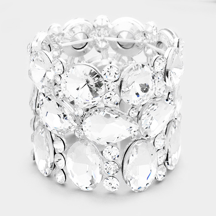 Crystal Stone Cluster Evening Stretch Bracelet