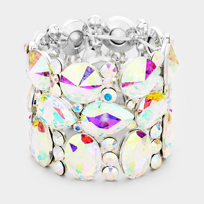 Crystal Stone Cluster Evening Stretch Bracelet
