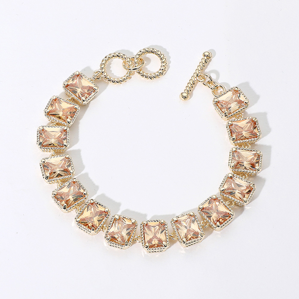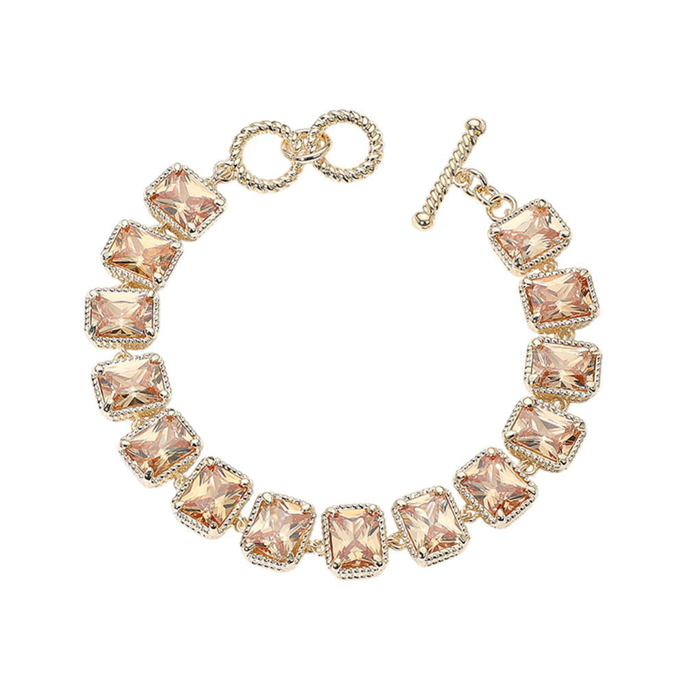 • Elegant bracelet featuring square-cut gemstones in linked settings, finished with a stylish toggle clasp. A timeless accessory ideal for formal events, weddings, or upscale occasions.