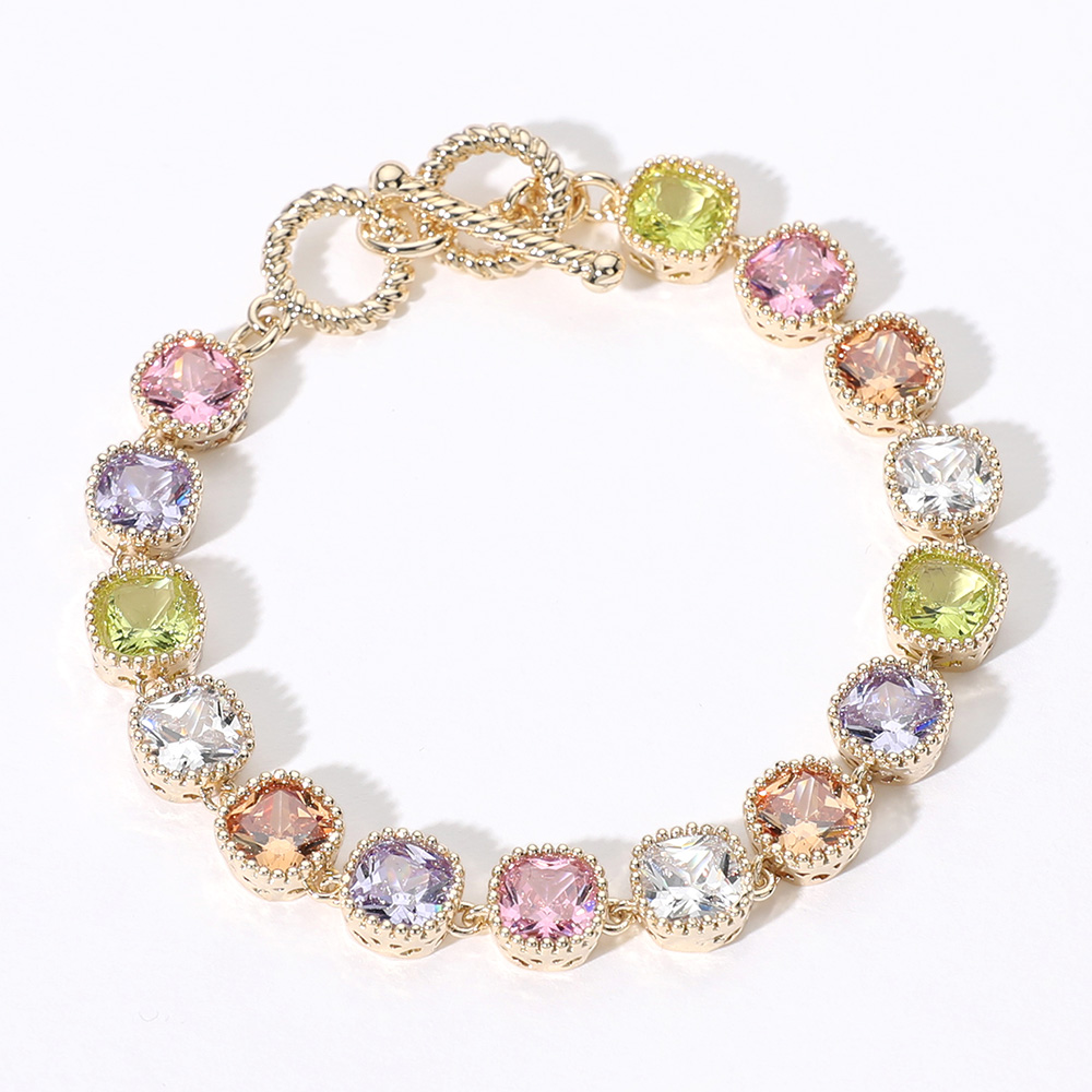 14K Gold Plated Square CZ Stone Link Evening Toggle Bracelet