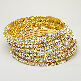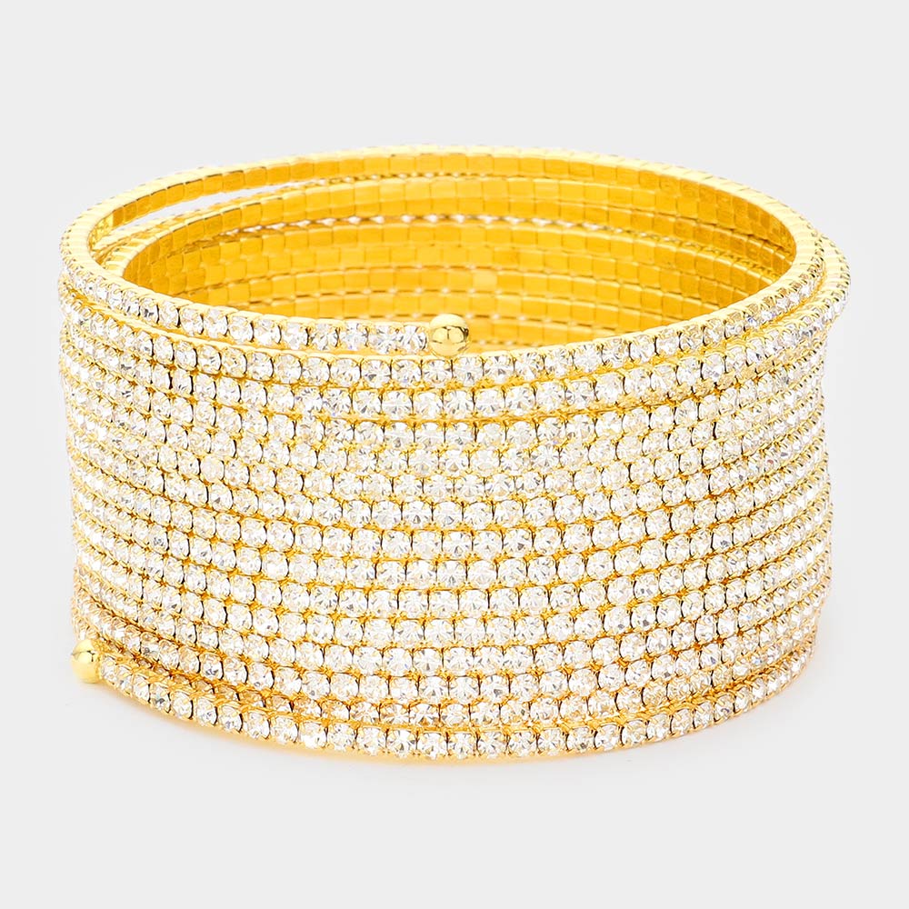 Round Teardrop Oval Stone Embellished Wide Hinged Bangle Bracelet