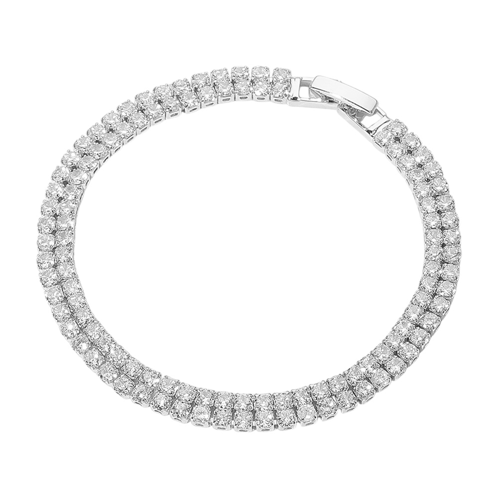 Details • Size : 0.2" H, 7" + 0.25" L • Fold Over Closure • Dazzle with timeless brilliance in this double row tennis bracelet adorned with round-cut CZ stones. An elegant piece that adds luxurious sparkle to evening attire or enhances any outfit with classic radiance. • Lead and Nickel Compliant • CZ Cubic Zirconia