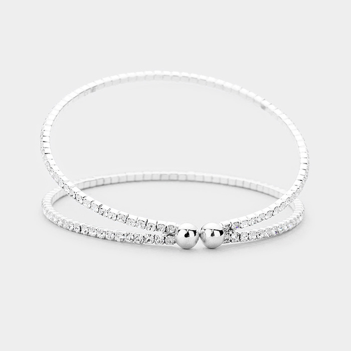 2Row Split Layer Rhinestone Pave Cuff Evening Bracelet