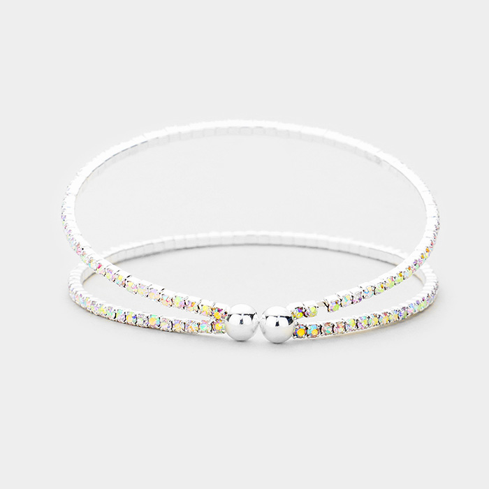 2Row Split Layer Rhinestone Pave Cuff Evening Bracelet