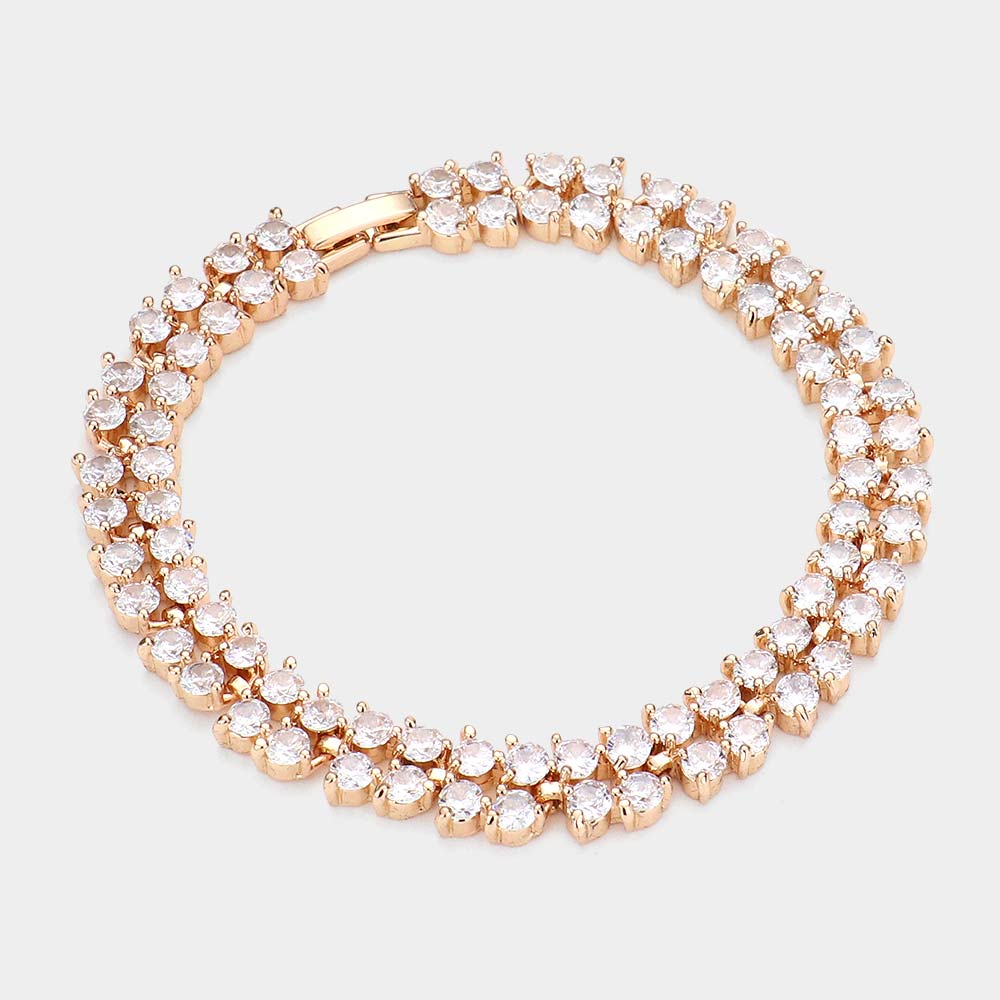 3PCS - Metal Cube Faceted Beaded Stretch Multi Layered Bracelets