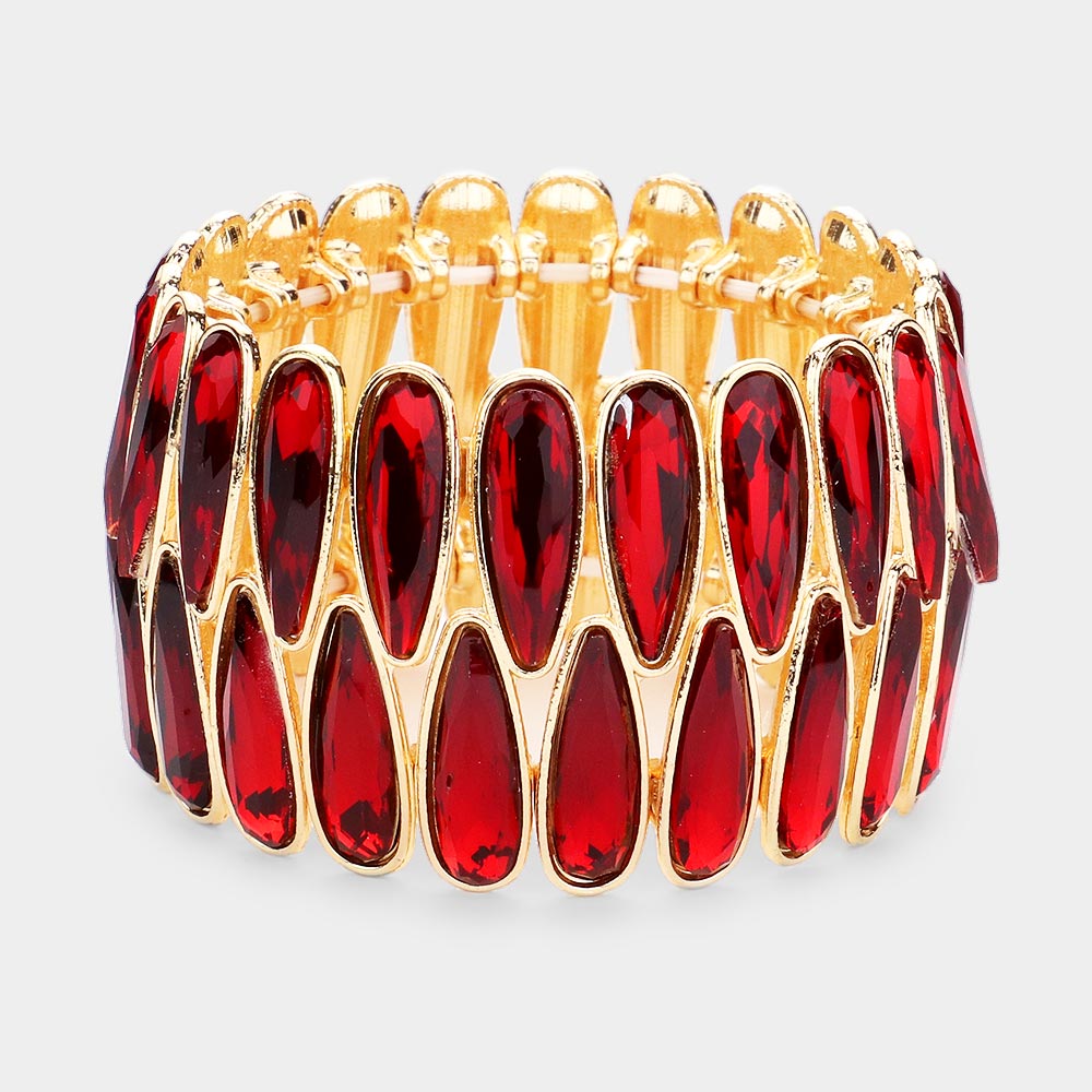2Rows Elongated Teardrop Stone Cluster Stretch Evening Bracelet