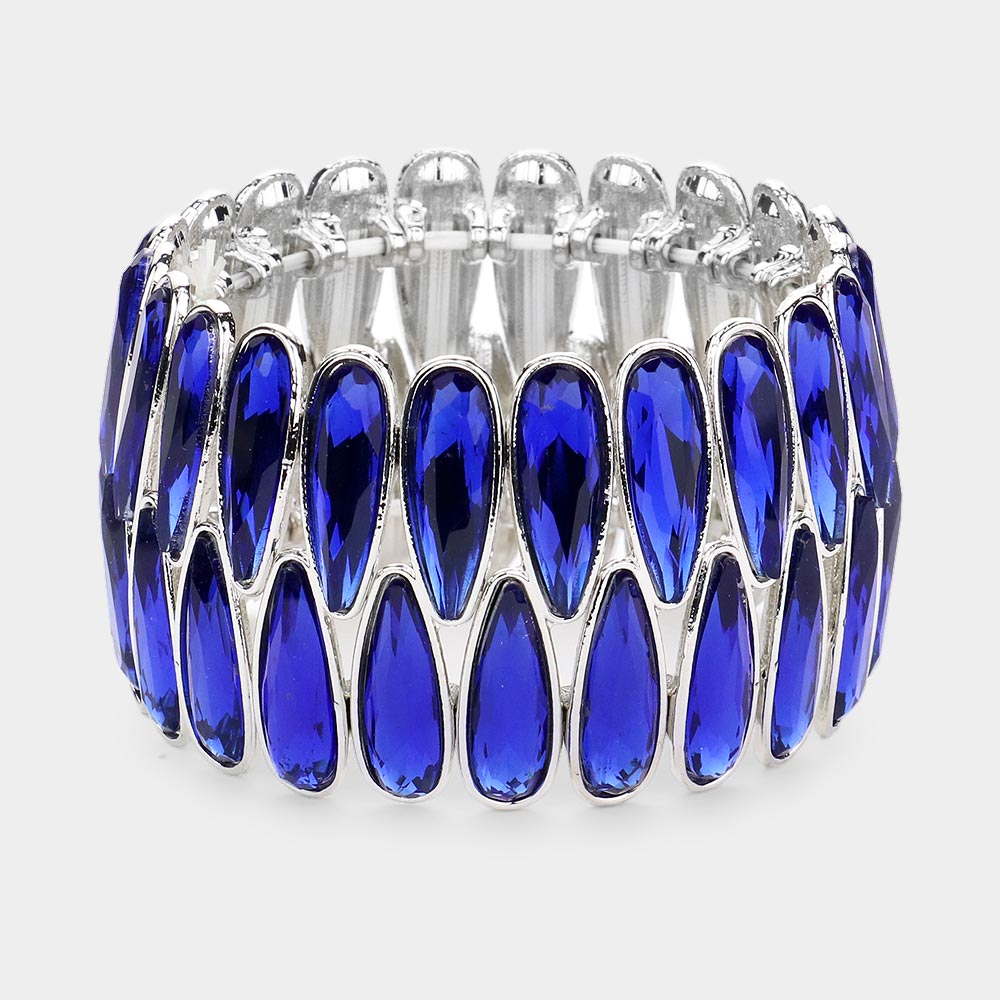 2Rows Elongated Teardrop Stone Cluster Stretch Evening Bracelet