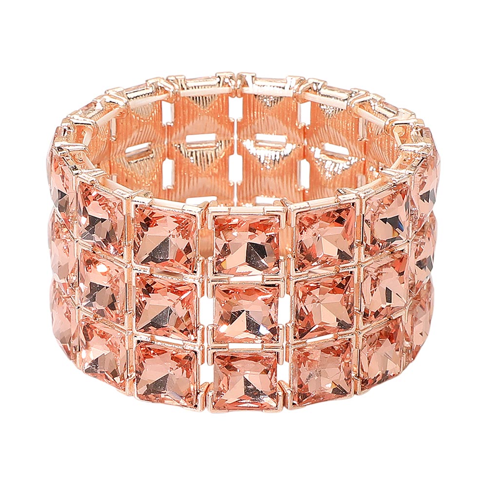 Details • Size : 1.5" H, 2.25" D • Stretchable • Make a striking statement with this square-cut crystal stretch bracelet designed for standout brilliance and effortless wear. Its bold, structured layout adds refined sparkle to evening looks or event ensembles, offering a glamorous finishing touch that catches every light beautifully.
