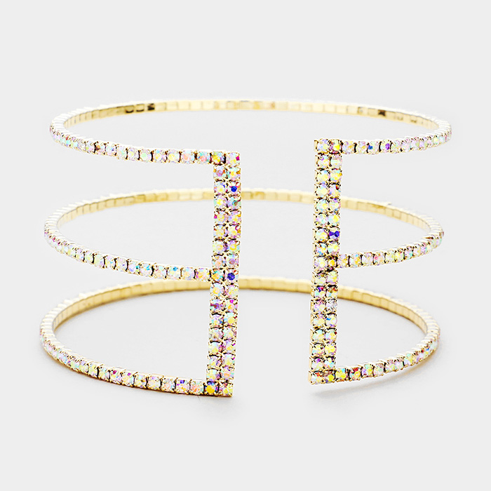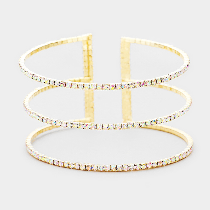 3Row Split Layer Round Crystal Detail Cuff Evening Bracelet