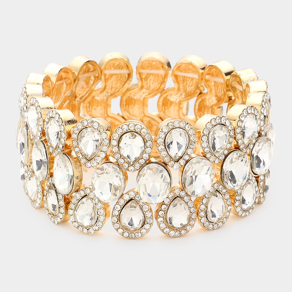 6PCS - Rhinestone Multi Layered Stretch Evening Bracelets