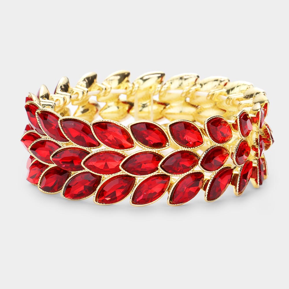 3Rows Marquise Stone Cluster Stretch Evening Bracelet