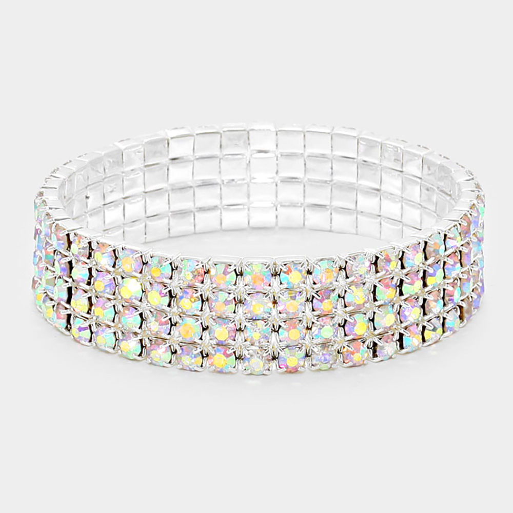Emerald Cut Crystal Accented Stretch Evening Bracelet