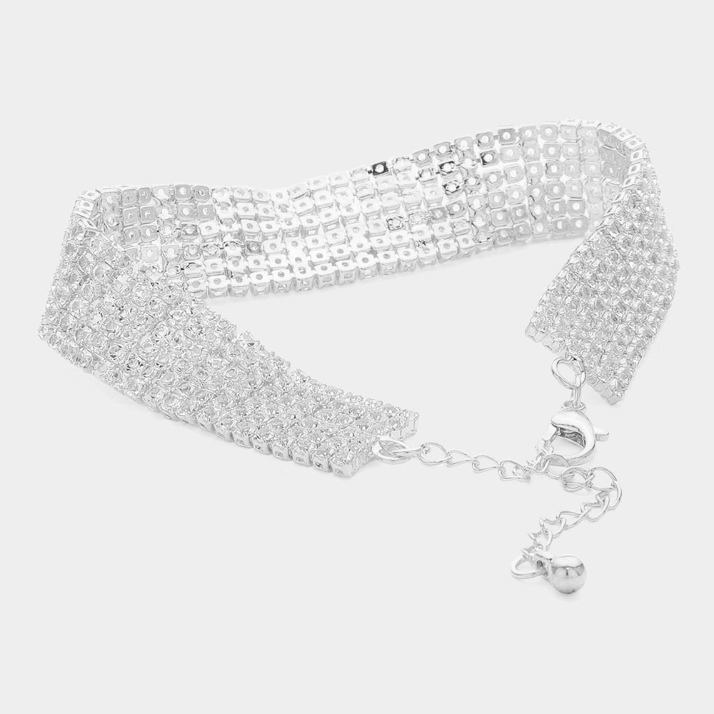 6 Row CZ Stone Embellished Tennis Evening Bracelet