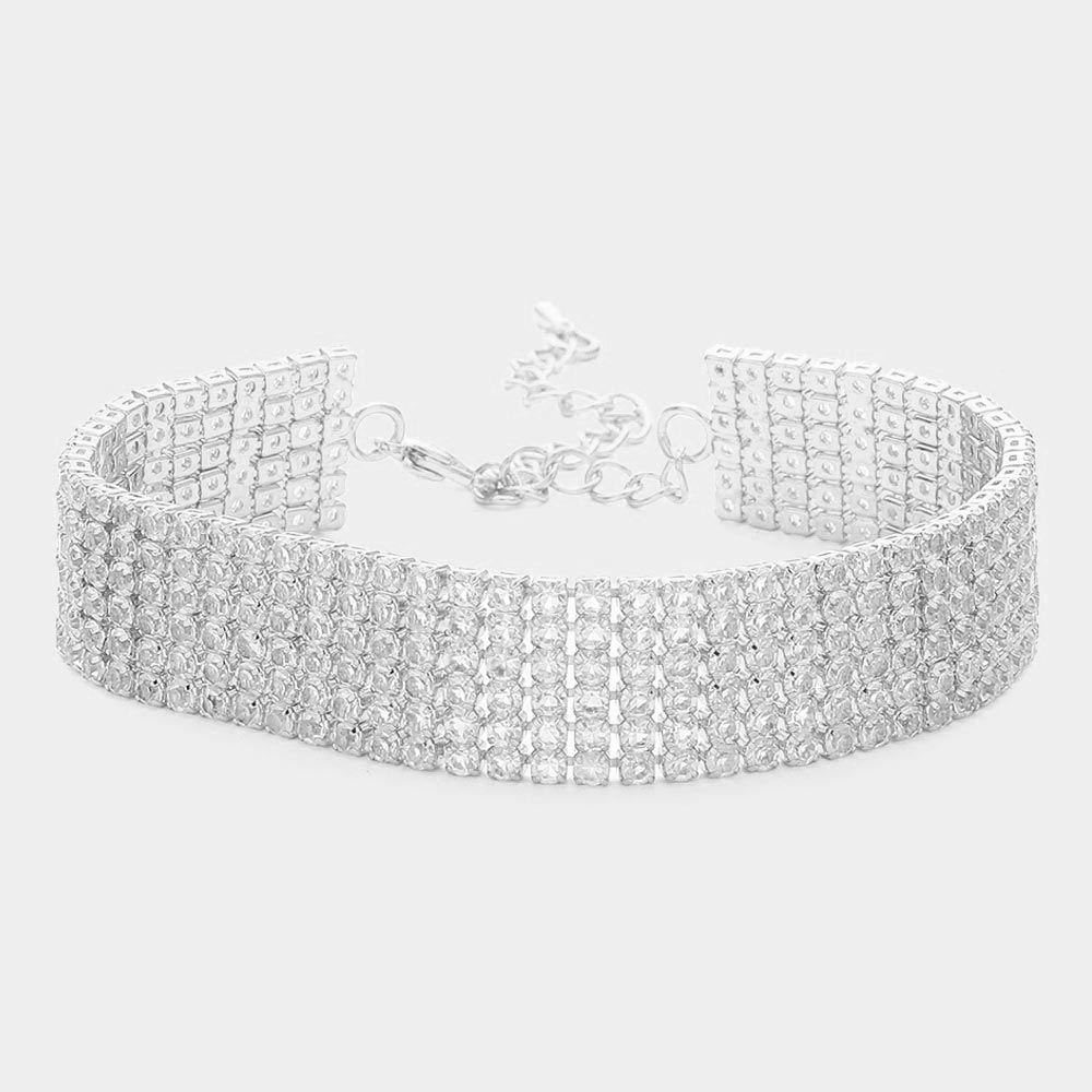 Rhinestone Pave Patterned Textured Metal Necklace Jewelry Set