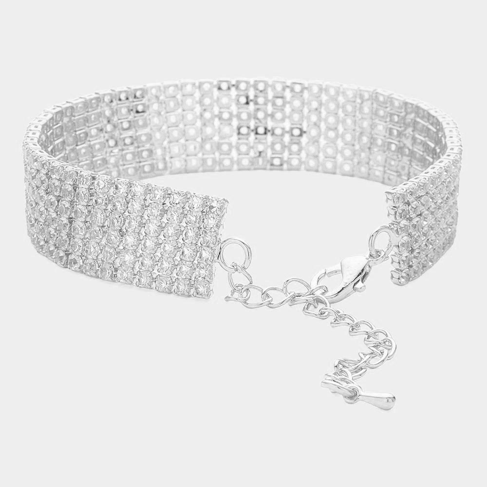 Stainless Steel CZ Stone Paved Dog Bone Charm Pointed Stretch Bracelet