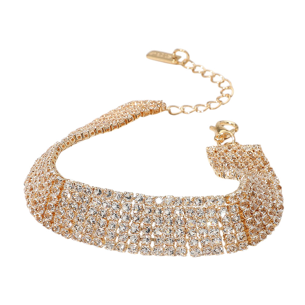 • Statement rhinestone bracelet with wide chain design and adjustable closure. Adds brilliant sparkle to any outfit, perfect for special occasions or elevating your everyday look.