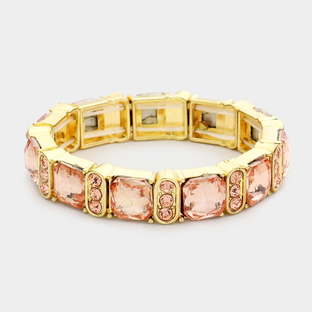Glass Crystal Teardrop Floral Stretch Evening Bracelet