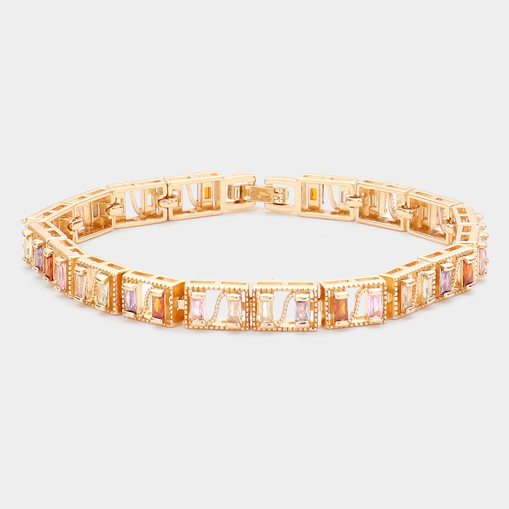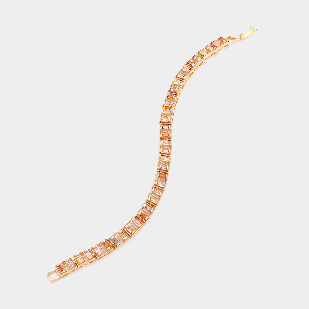 Baguette Round CZ Stone Accented Evening Bracelet