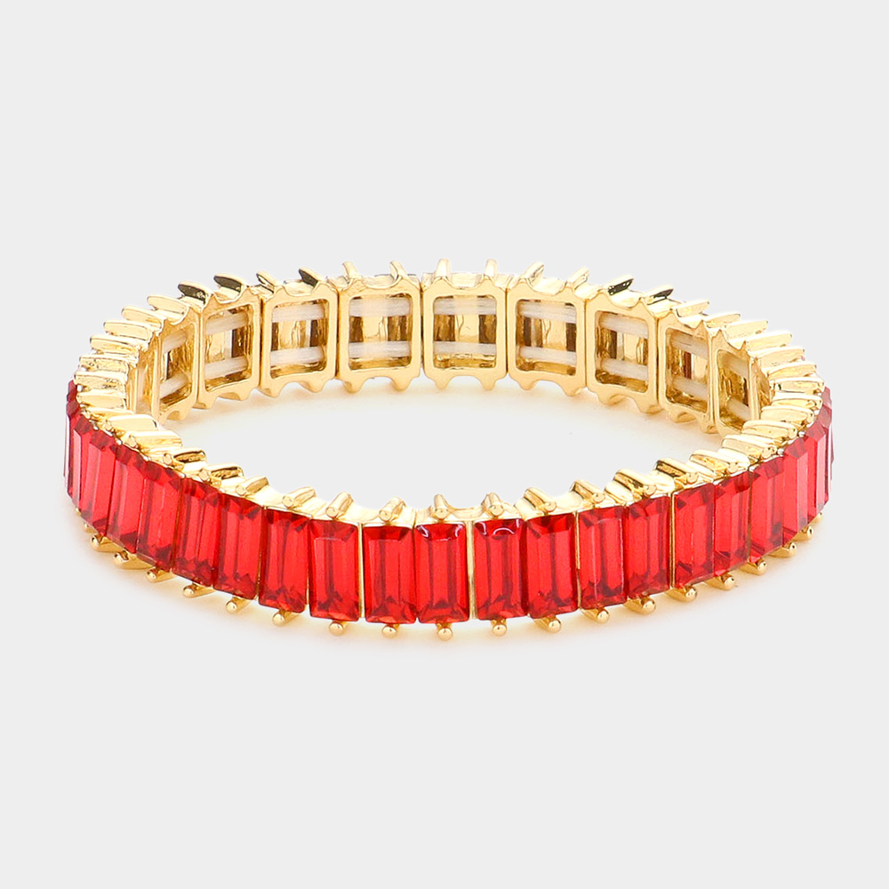American USA Flag Baguette Stone Stretch Evening Bracelet