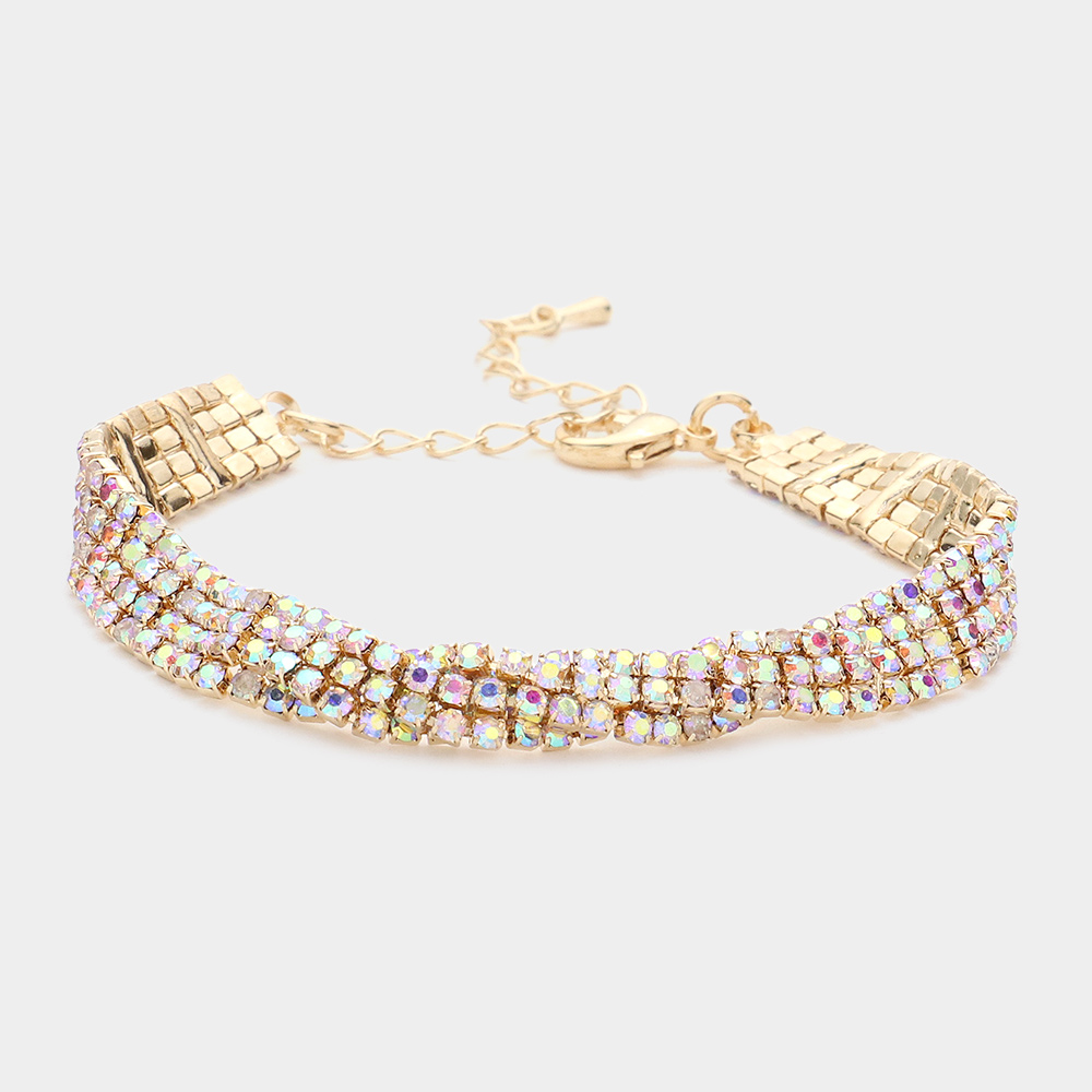 Teardrop Glass Stone Cluster Stretch Evening Bracelet