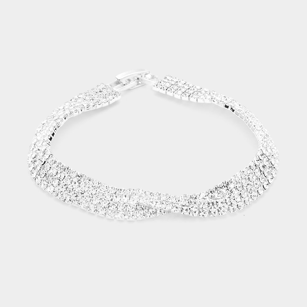 Crisscross Detailed Rhinestone Pave Evening Bracelet