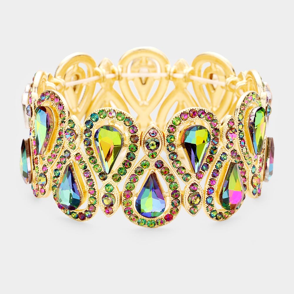 Crystal Glass Teardrop Evening Stretch Bracelet