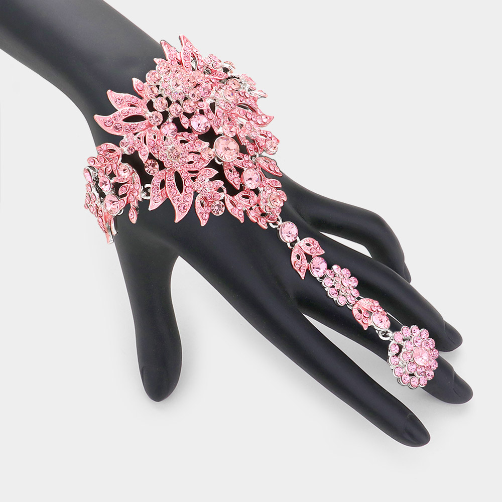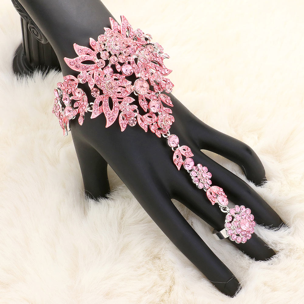 Crystal Rhinestone Accented Hand Chain Evening Bracelet