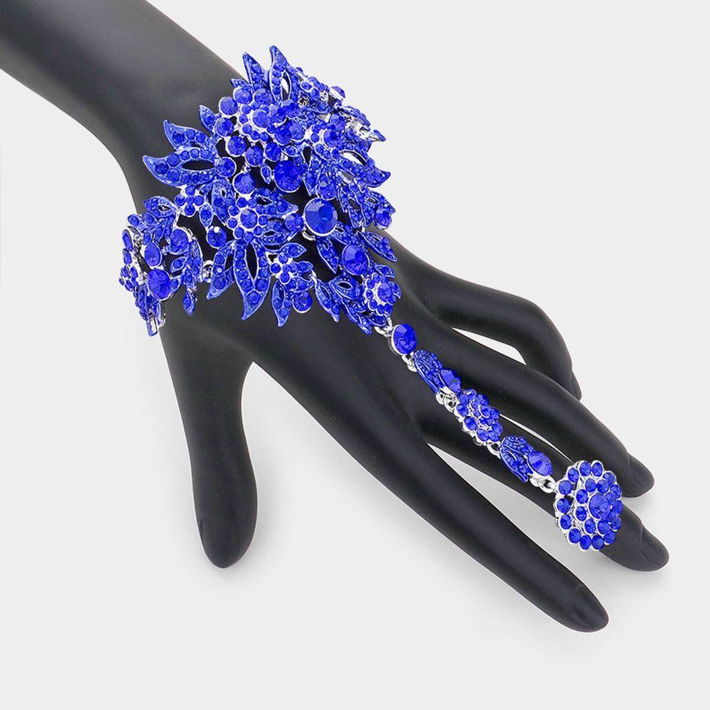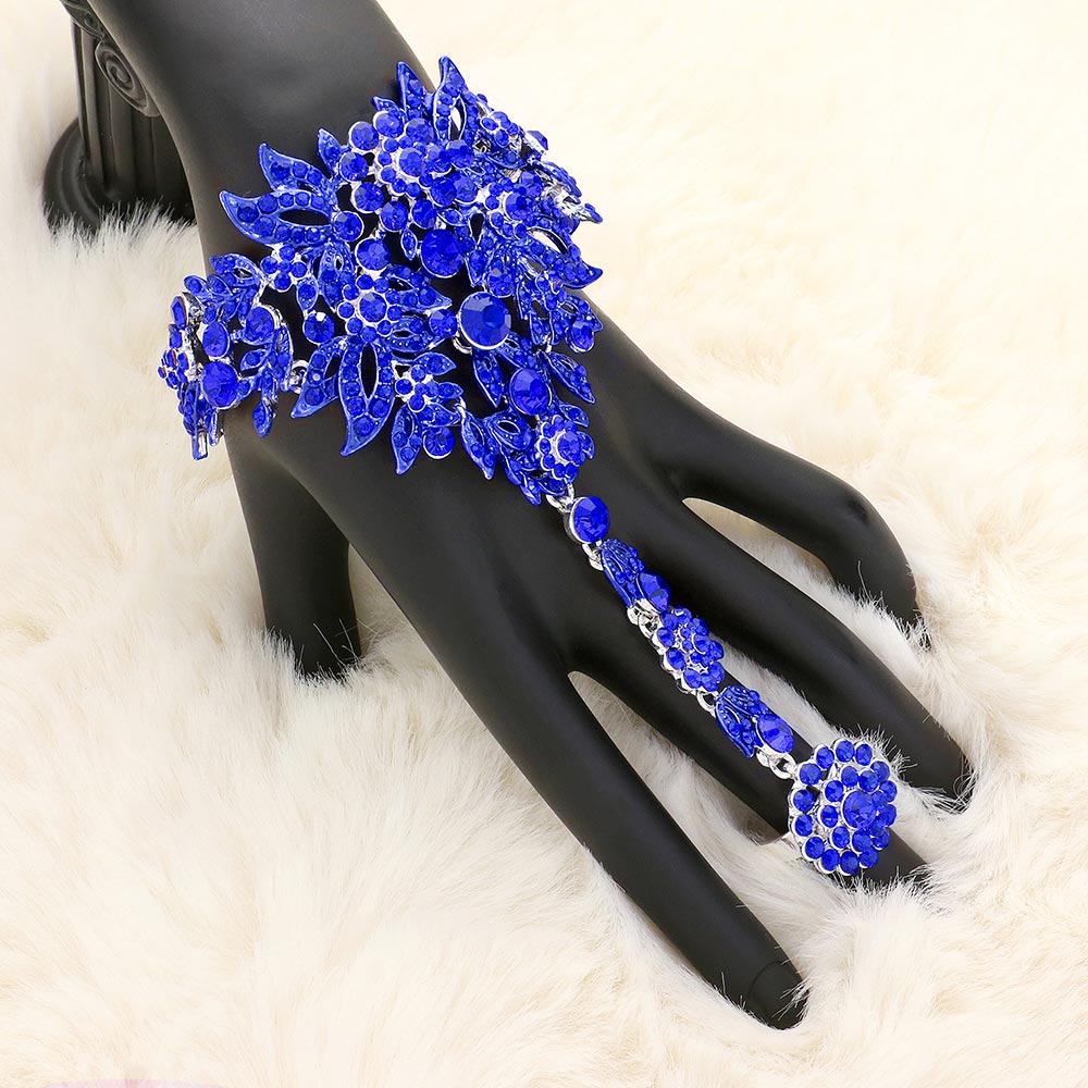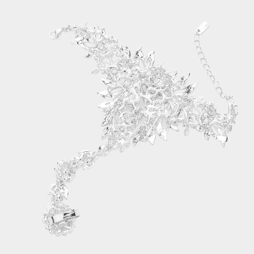 Crystal Rhinestone Accented Hand Chain Evening Bracelet