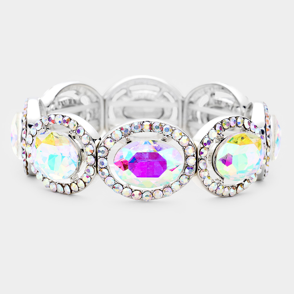Crystal Rhinestone Oval Stretch Evening Bracelet