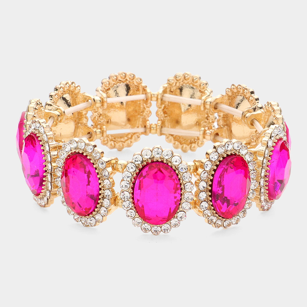 Crystal Rhinestone Oval Stretch Evening Bracelet