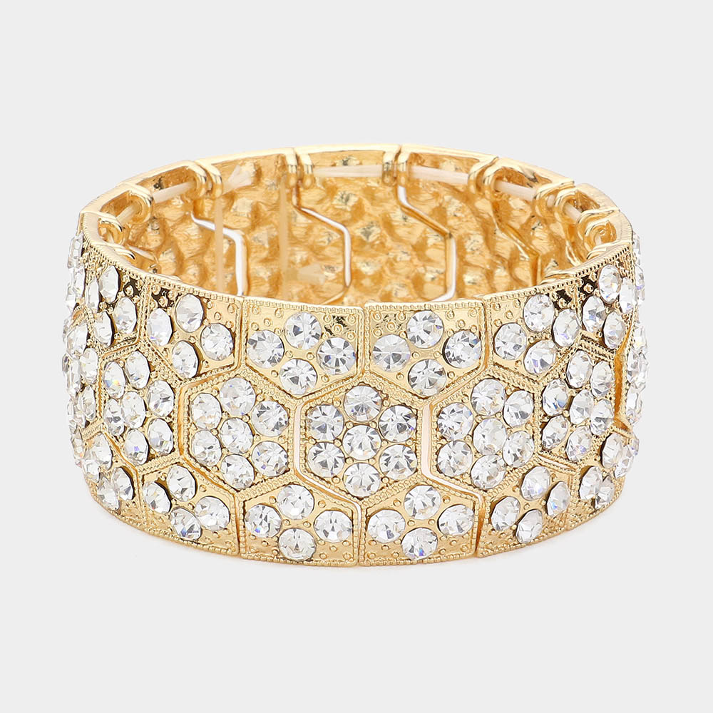 Crystal Rhinestone Paved Honey Comb Evening Stretch Bracelet