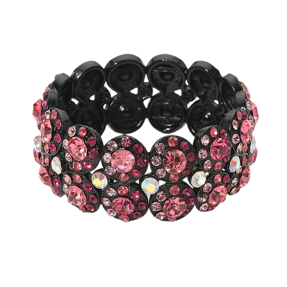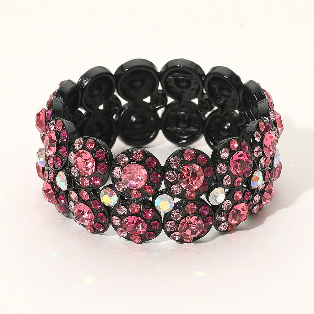 • Bold stretch bracelet adorned with sparkling floral crystal clusters. Eye-catching design perfect for adding a vibrant statement to evening outfits or stylish daywear.