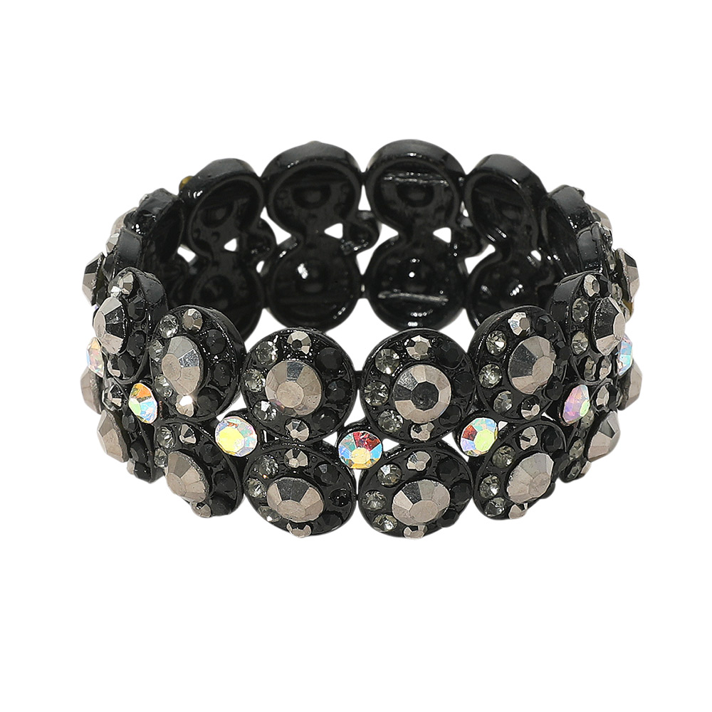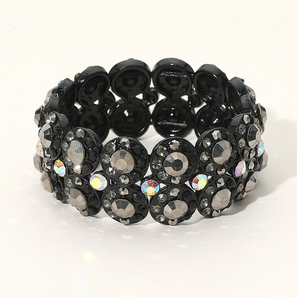 • Bold stretch bracelet adorned with sparkling floral crystal clusters. Eye-catching design perfect for adding a vibrant statement to evening outfits or stylish daywear.