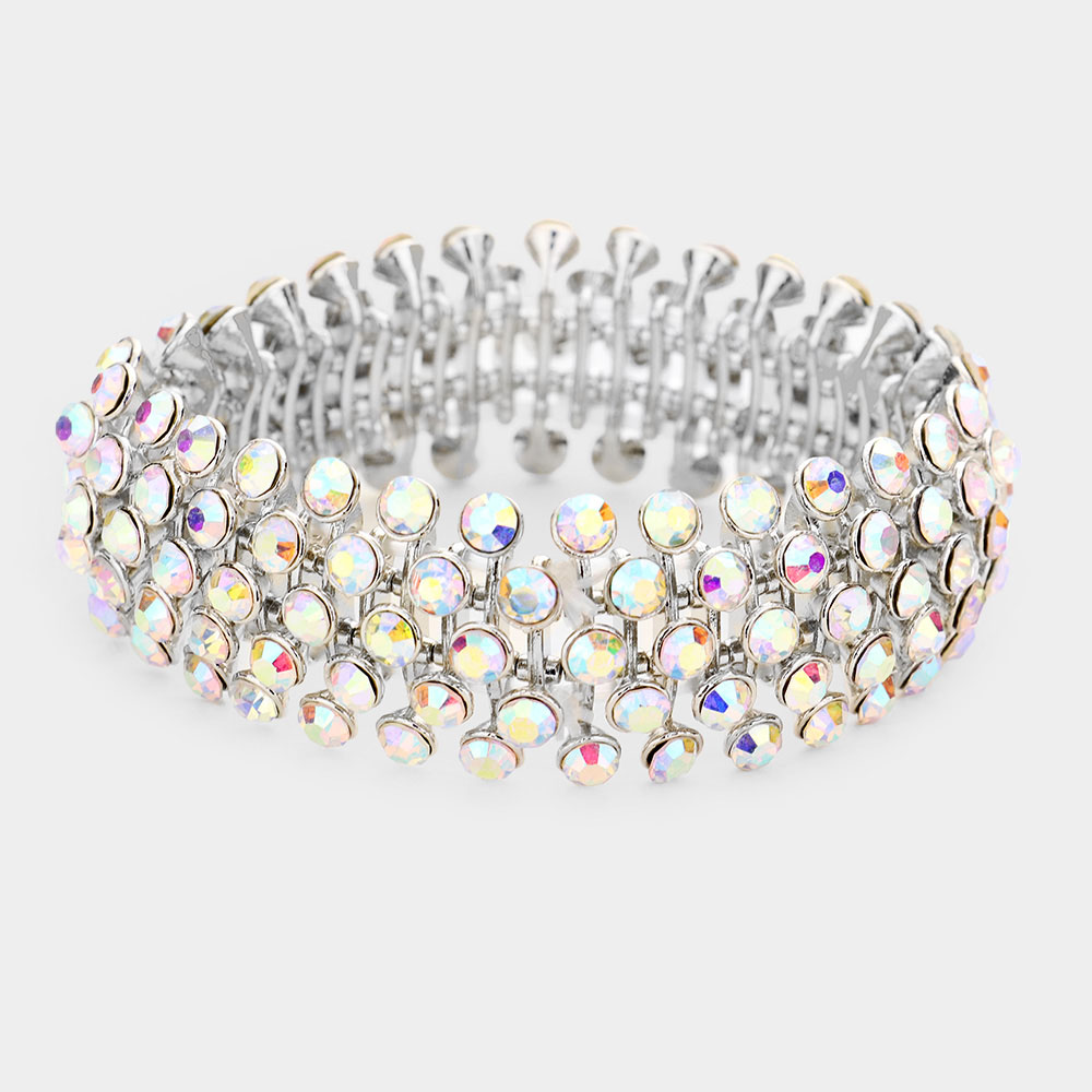 Wide Rhinestone Paved Evening Cuff Bracelet