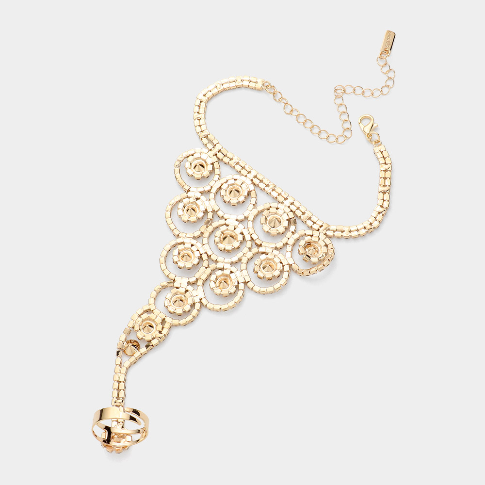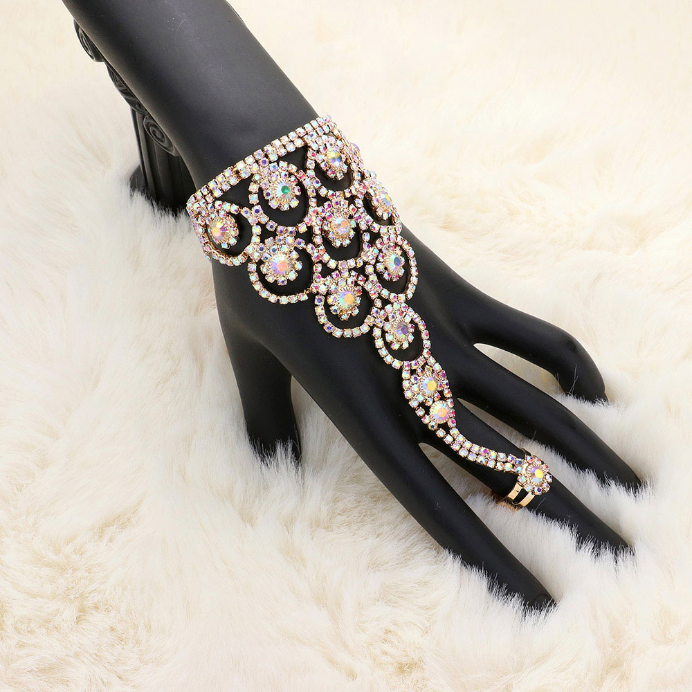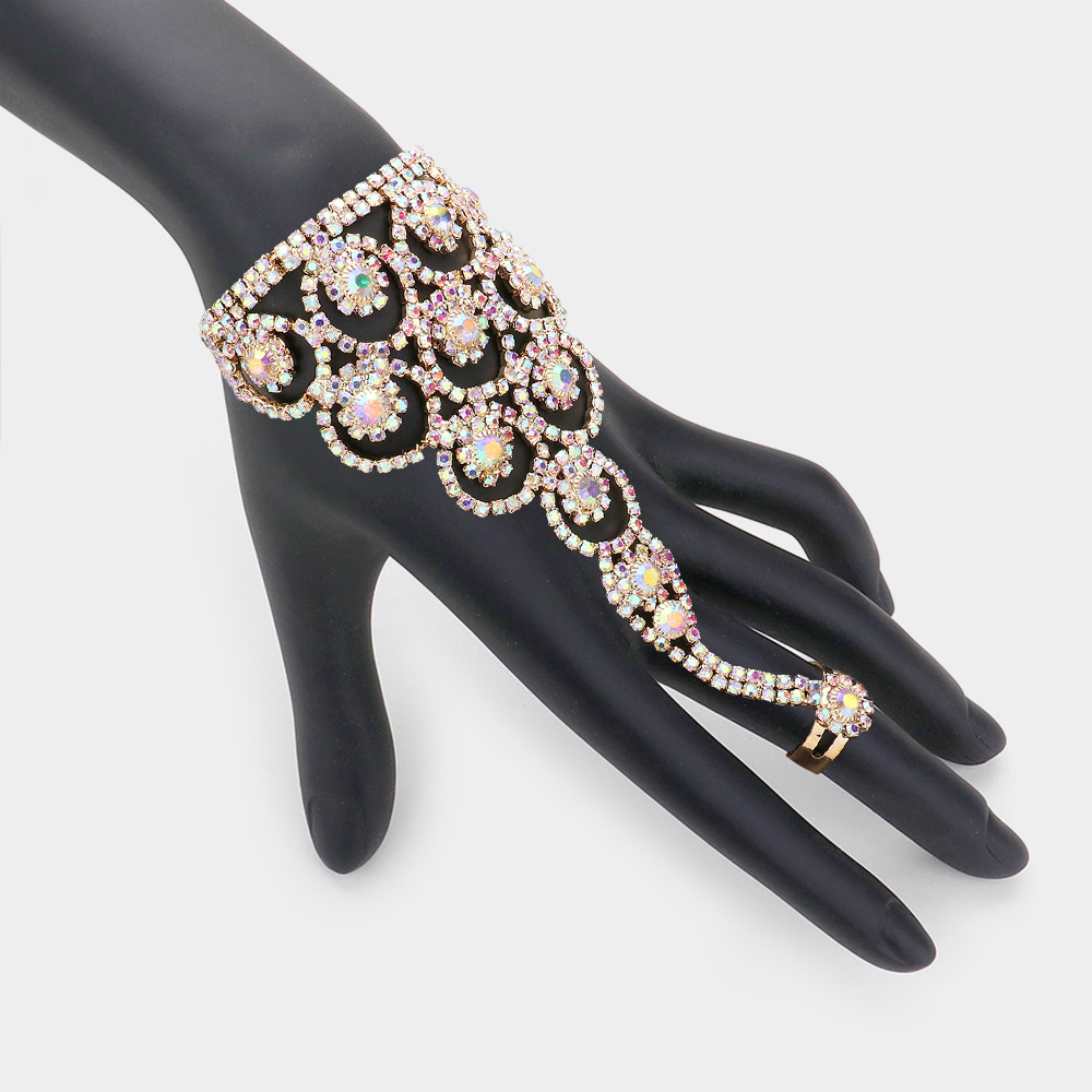 Crystal Round Rhinestone Pave Hand Chain Evening Bracelet