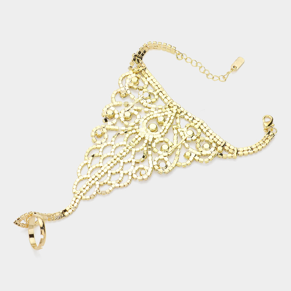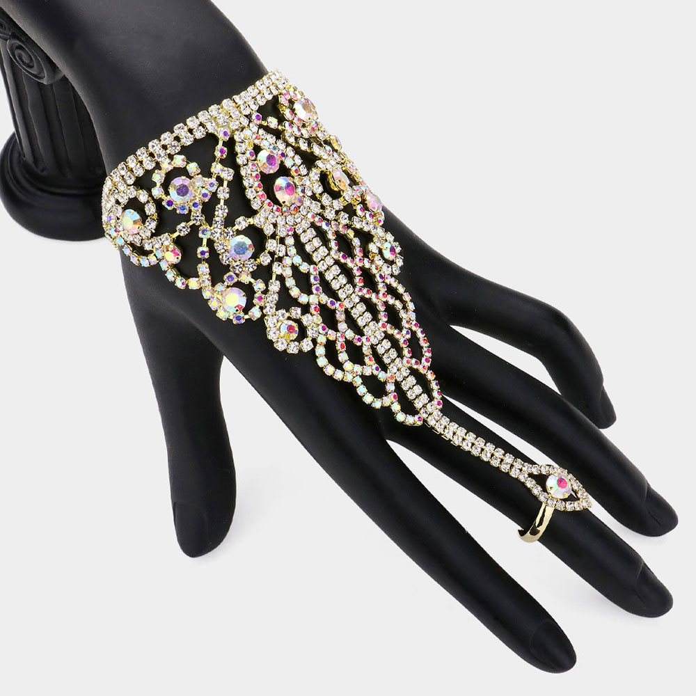 Crystal Round Rhinestone Pave Hand Chain Evening Bracelet