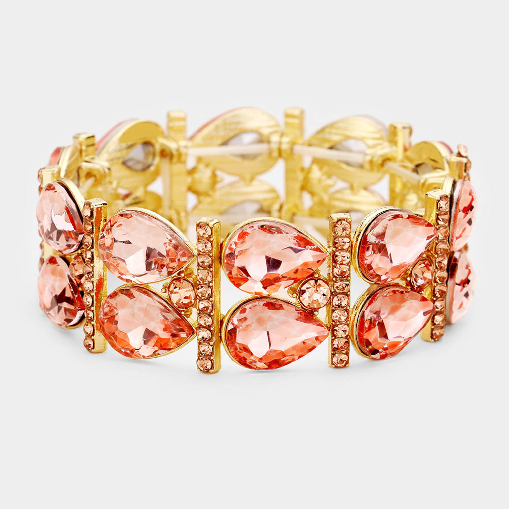 Crystal Teardrop Rhinestone Pave Stretch Evening Bracelet
