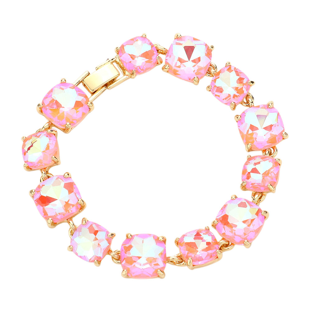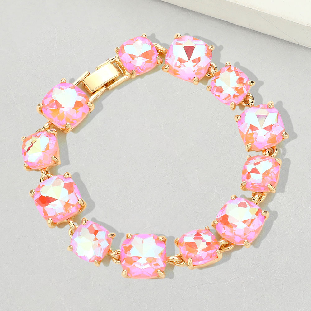 Details • Size : 0.5" H, 7.5" L • Fold Over Closure • Elegant bracelet featuring sparkling square-cut crystals with a vivid, reflective finish. Ideal for parties, weddings, or adding brilliance to formal looks. A radiant accessory that commands attention. • Lead and Nickel Compliant