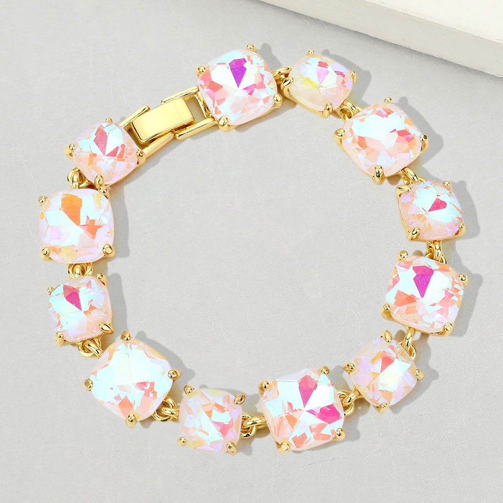 • Elegant bracelet featuring sparkling square-cut crystals with a vivid, reflective finish. Ideal for parties, weddings, or adding brilliance to formal looks. A radiant accessory that commands attention.