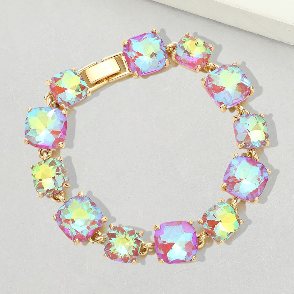• Elegant bracelet featuring sparkling square-cut crystals with a vivid, reflective finish. Ideal for parties, weddings, or adding brilliance to formal looks. A radiant accessory that commands attention.