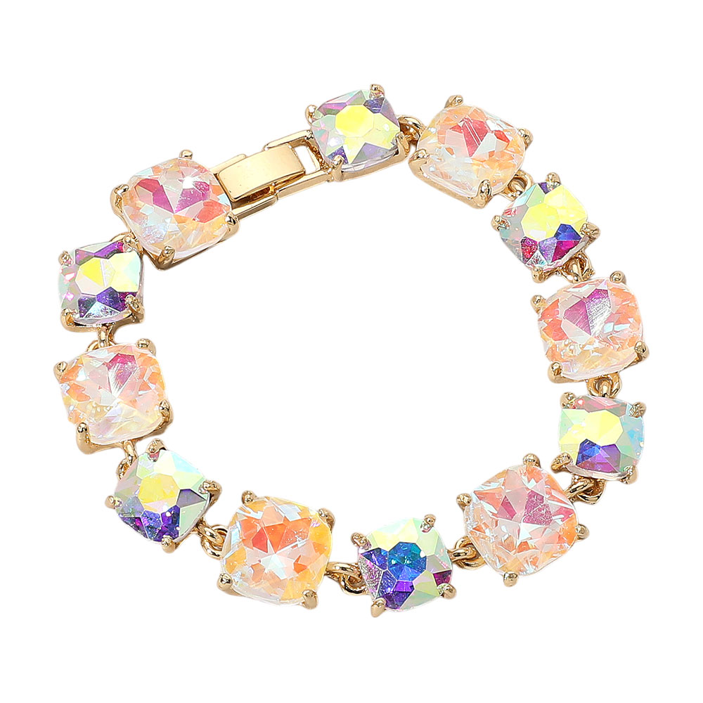• Elegant bracelet featuring sparkling square-cut crystals with a vivid, reflective finish. Ideal for parties, weddings, or adding brilliance to formal looks. A radiant accessory that commands attention.