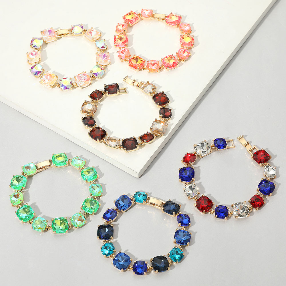 Details • Size : 0.5" H, 7.5" L • Fold Over Closure • Elegant bracelet featuring sparkling square-cut crystals with a vivid, reflective finish. Ideal for parties, weddings, or adding brilliance to formal looks. A radiant accessory that commands attention. • Lead and Nickel Compliant