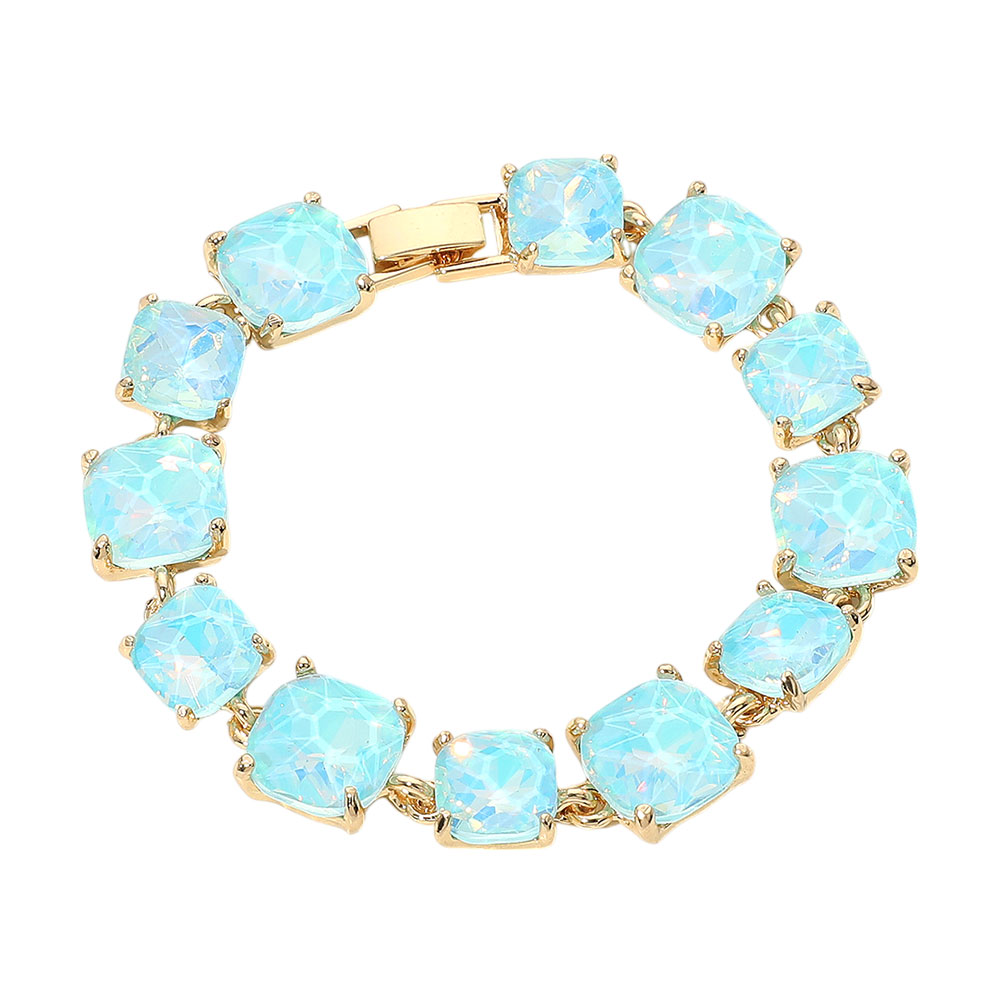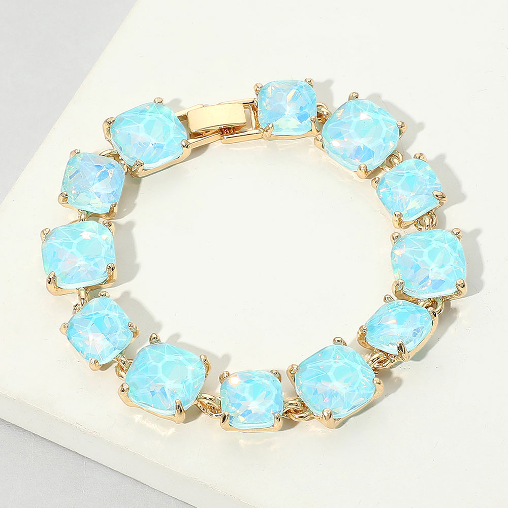 Details • Size : 0.5" H, 7.5" L • Fold Over Closure • Elegant bracelet featuring sparkling square-cut crystals with a vivid, reflective finish. Ideal for parties, weddings, or adding brilliance to formal looks. A radiant accessory that commands attention. • Lead and Nickel Compliant