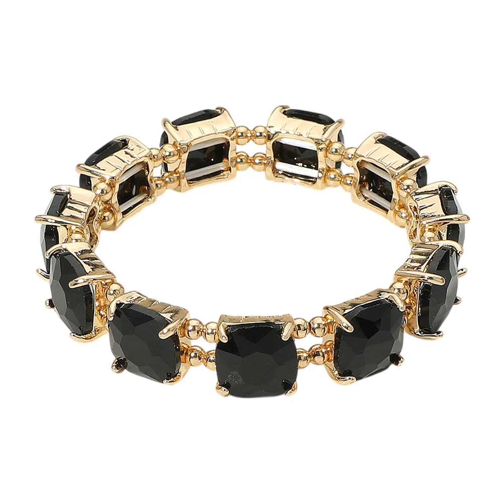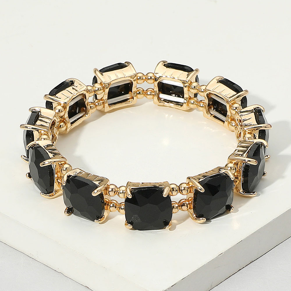 Cushion Square Stone Stretch Evening Bracelet Cushion Square Stone Stretch Evening Bracelet