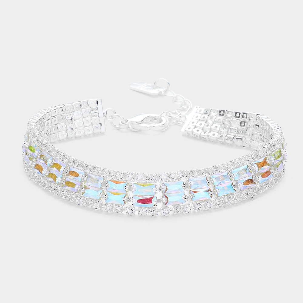 CZ Baguette Rhinestone Embellished Evening Bracelet