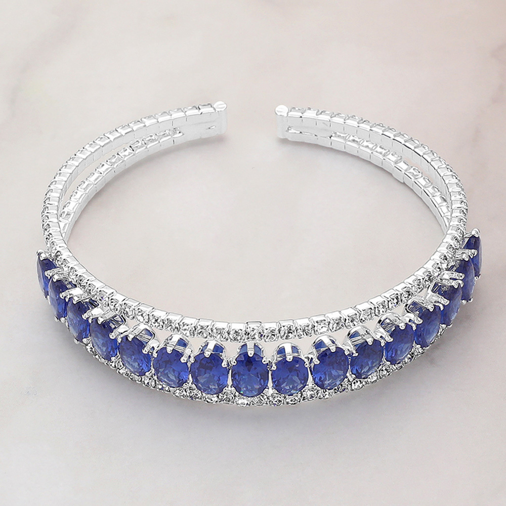 CZ Oval Stone Accented Evening Cuff Bracelet CZ Oval Stone Accented Evening Cuff Bracelet CZ Oval Stone Accented Evening Cuff Bracelet