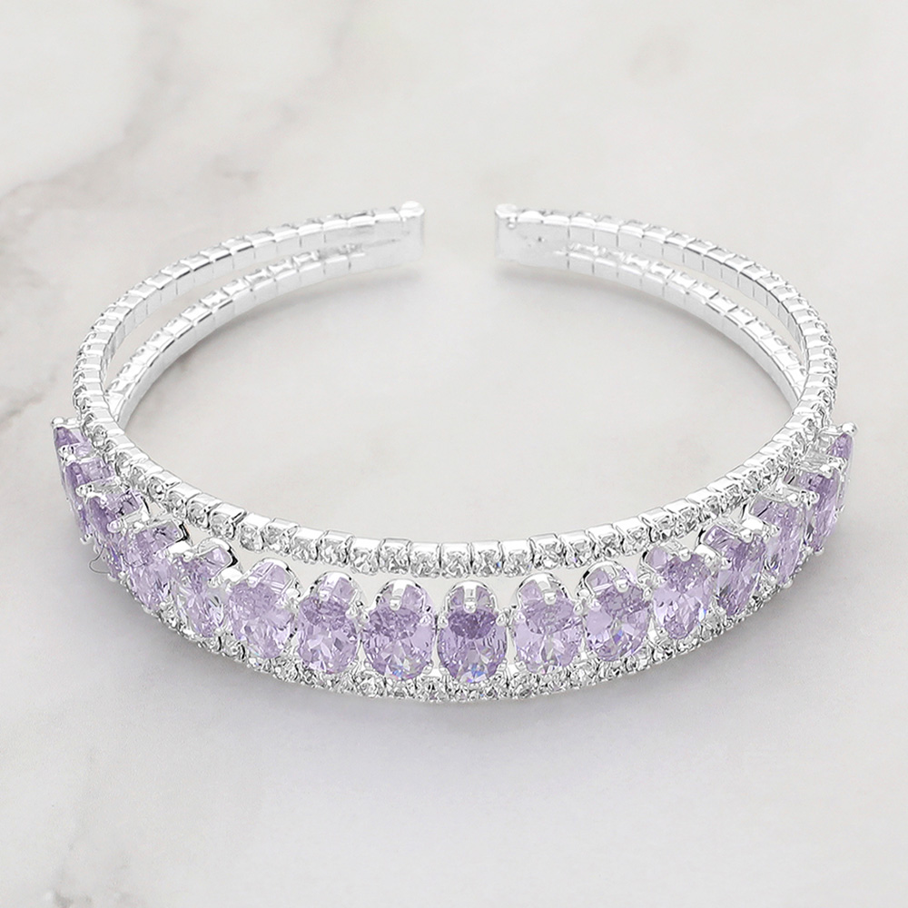 CZ Oval Stone Accented Evening Cuff Bracelet