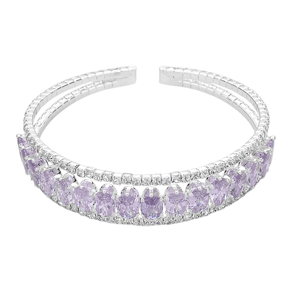CZ Oval Stone Accented Evening Cuff Bracelet CZ Oval Stone Accented Evening Cuff Bracelet CZ Oval Stone Accented Evening Cuff Bracelet