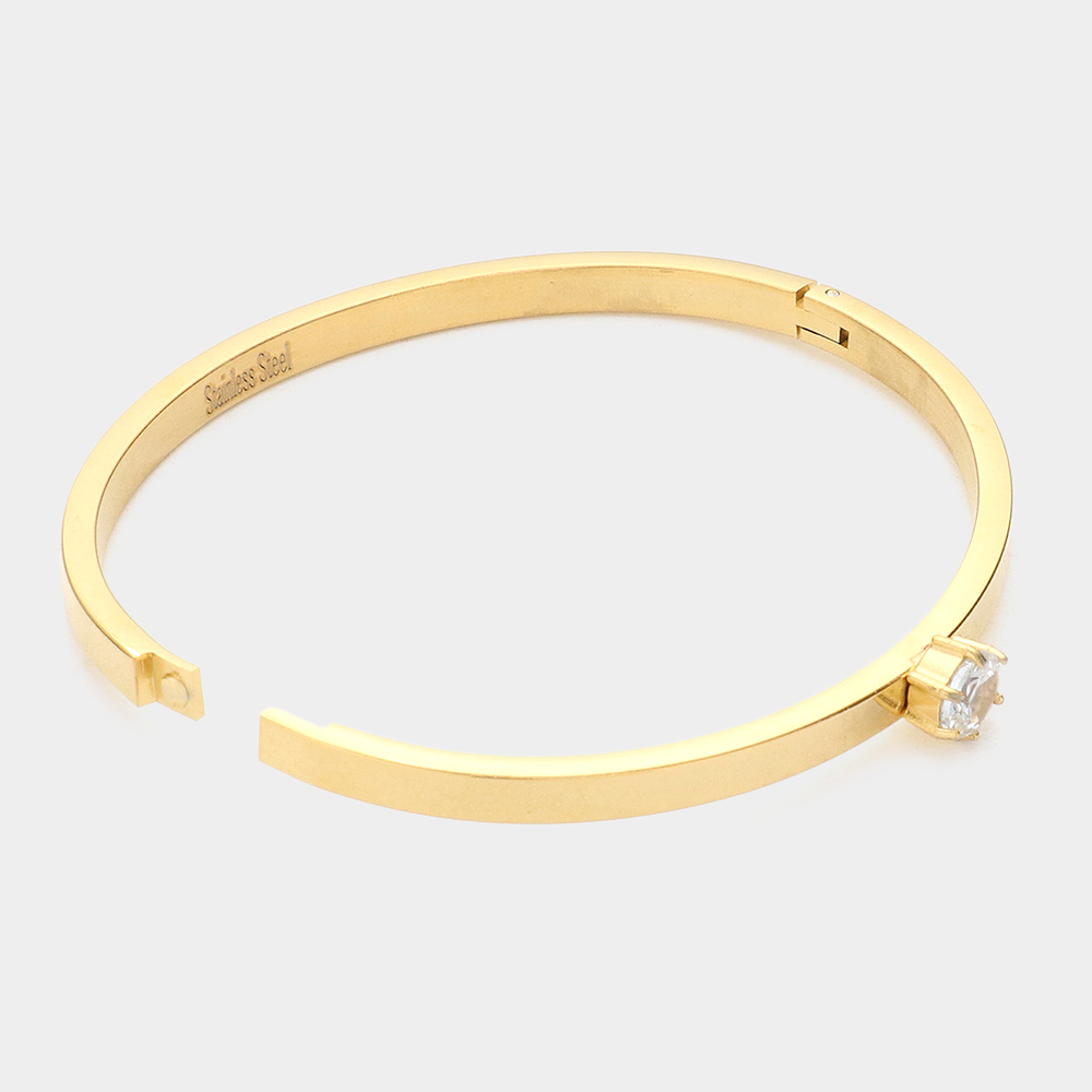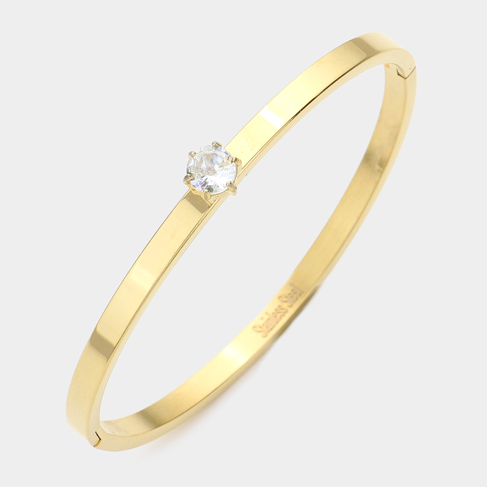 CZ Rond Stone Accented Stainless Steel Bangle Bracelet