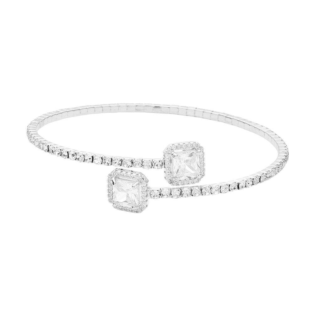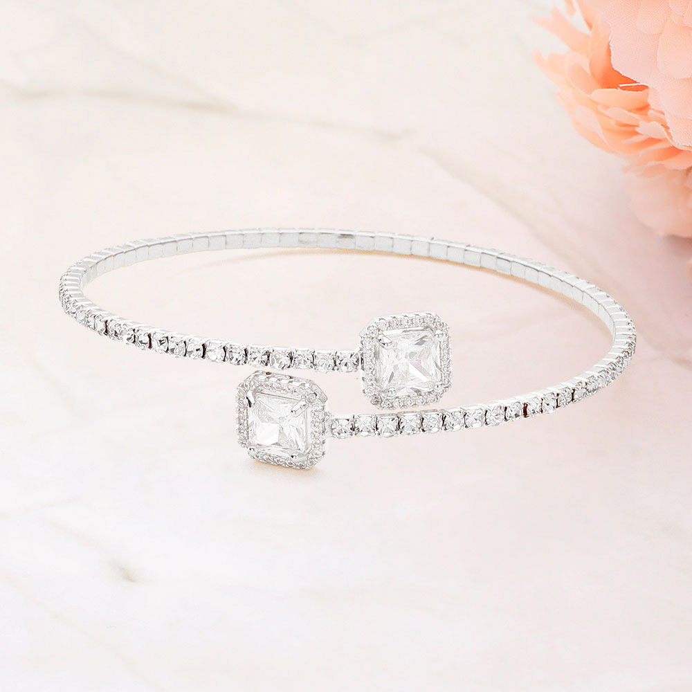 CZ Square Stone Tip Rhinestone Paved Evening Bracelet